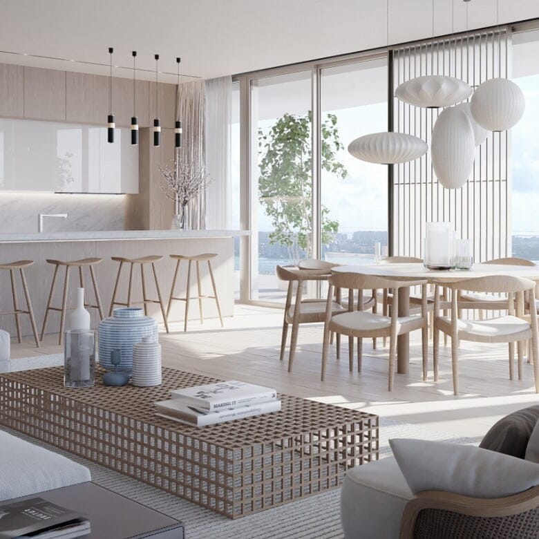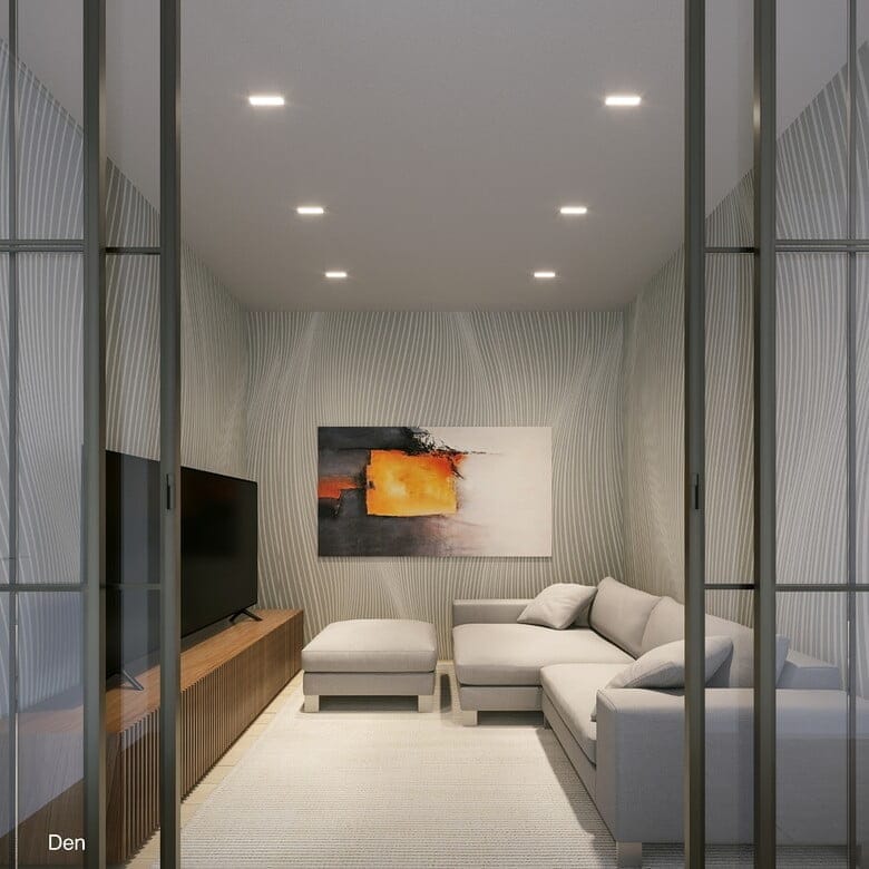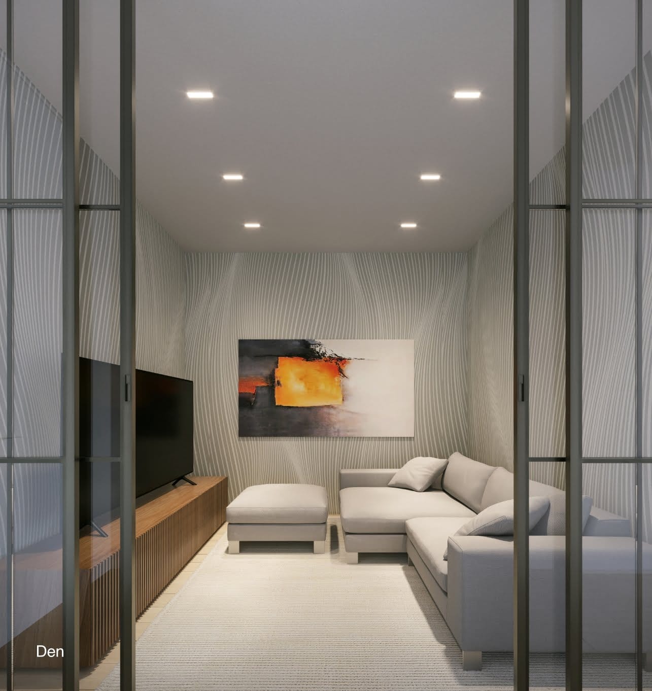 Possui plantas baixas abertas, espaçosas e totalmente finalizadas, com pé-direito de mais de 2,74 metros (9 pés), que se estendem até varandas privativas amplas, com piso e varandas panorâmicas com proteção de vidro que permitem desfrutar de um ambiente interno e externo sem interferências.